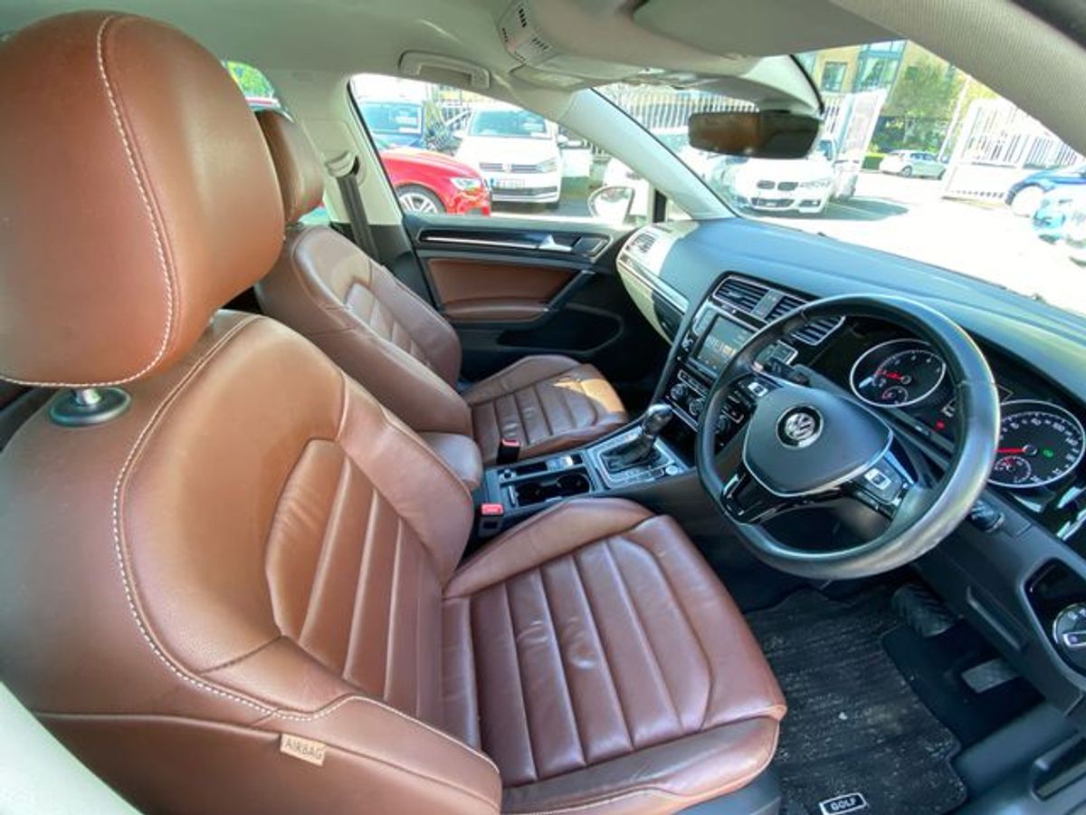 2017 VW GOLF . HIGHLINE SPEC 1.4 Tsi AUTO . PRESENTED IN PURE WHITE WITH A LOVELY HIGH SPEC TO INCLUDE VW SAT NAV . GOGNAC FULL LEATHER HEATED SEATS . VW FACTORY BODY STYLING KIT . REVERSING CAMERA . AIR CON . ELECTRIC WINDOWS . MULTI FUNCTION LEATHER 3 SPOKE STEERING WHEEL WITH CRUISE CONTROL .