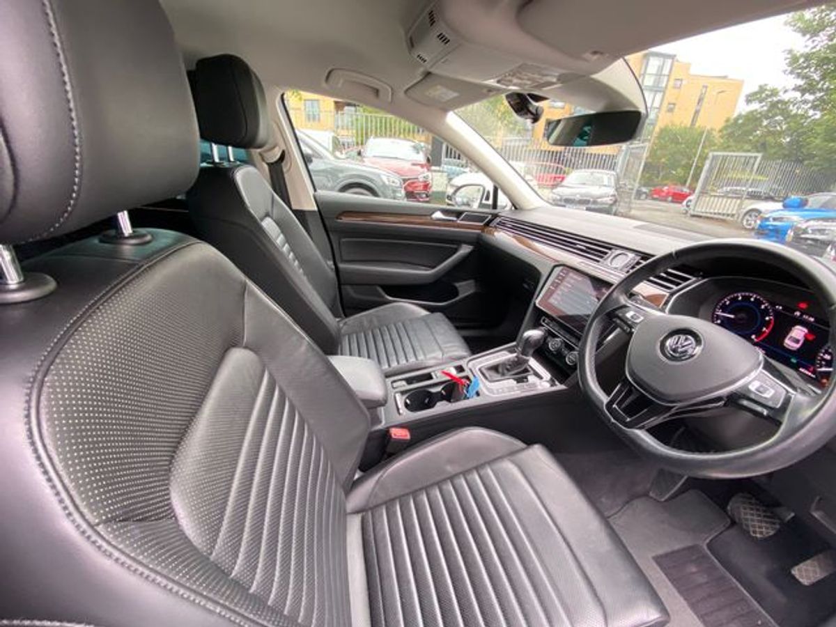 2019 VW PASSAT 1.4Tsi AUTO . PRESENTED IN PURE WHITE WITH A HUGE SPEC TO INCLUDE ALLOY WHEELS . HEATED AND COOLED RIBBED LEATHER SEATS. 360 REVERSING CAMERA . VW NAVIGATION . GIGI COCKPIT . LED HEADLIGHTS .CHROME PACK . AIR CON . ELECTRIC WINDOWS . MULTI FUNCTION LEATHER 3 SPOKE STEERING WHEEL
