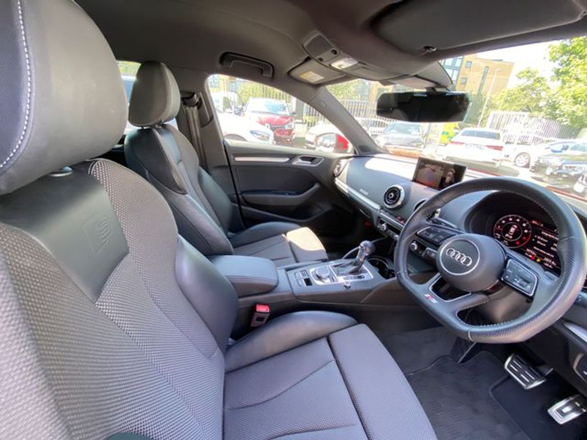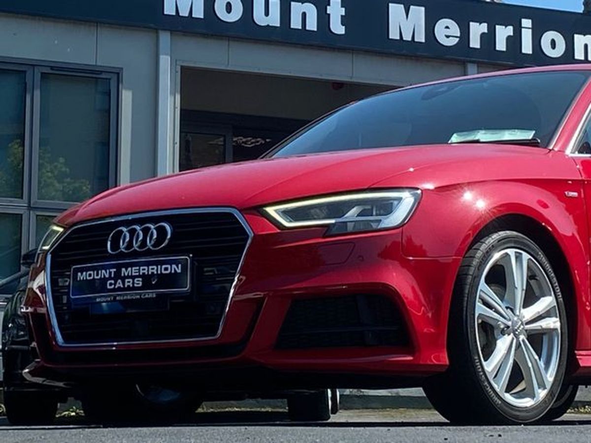 2019 AUDI A3 5DOOR WITH FULL S-LINE SPEC AND WITH AN AUTOMATIC TRANSMISION . PRESENTED IN FLASH RED METALLIC . REAR TINTED GLASS . FEATURES INCLUDE DIGITAL COCKPIT . S-LINE ALLOY WHEELS . S-LINE EMBOSSED SPORTS SEATS . APPLE CAR PLAY . LED HEADLIGHTS . AIR CON . ELECTRIC WINDOWS . KEYLESS LOCKING