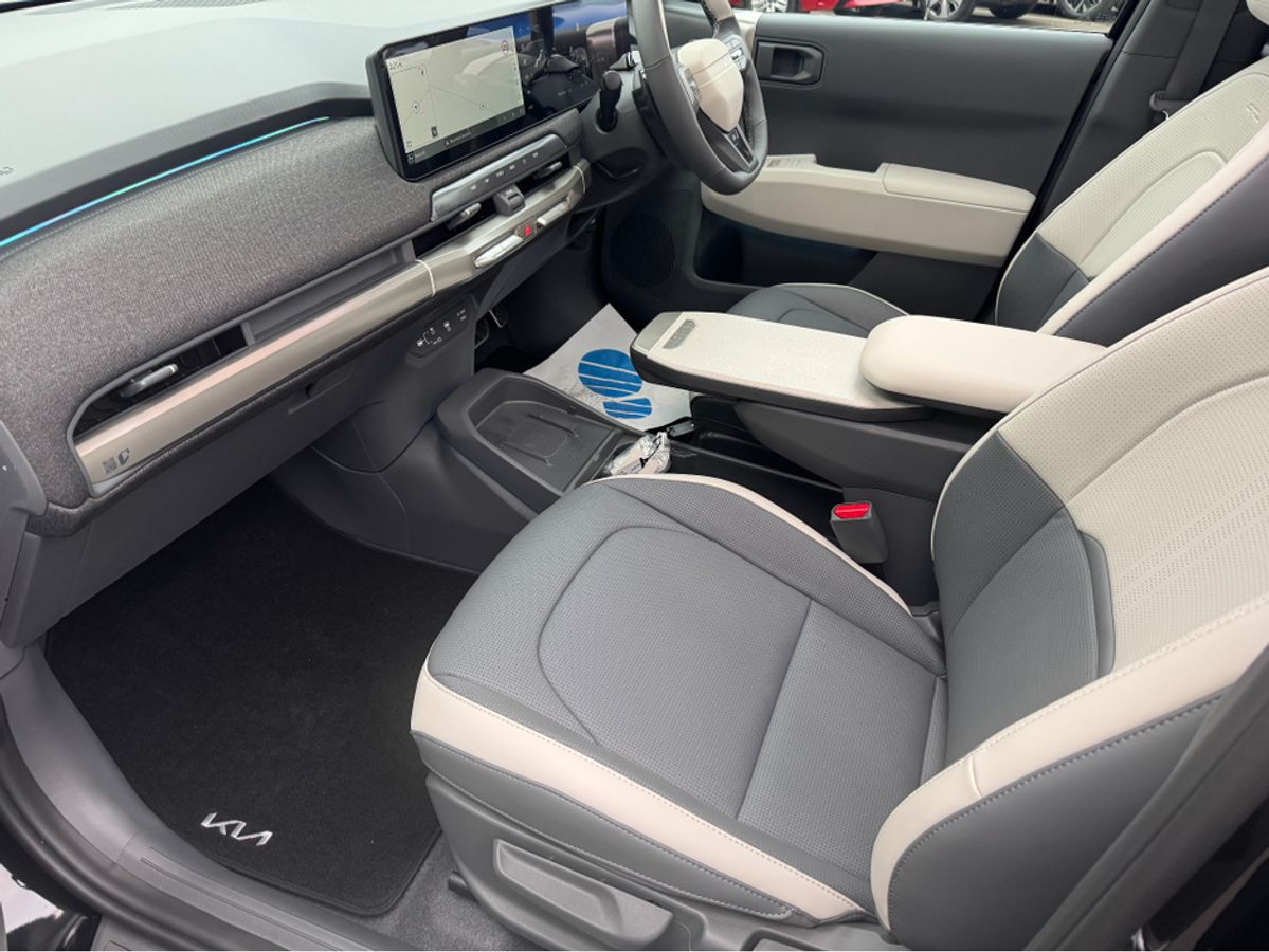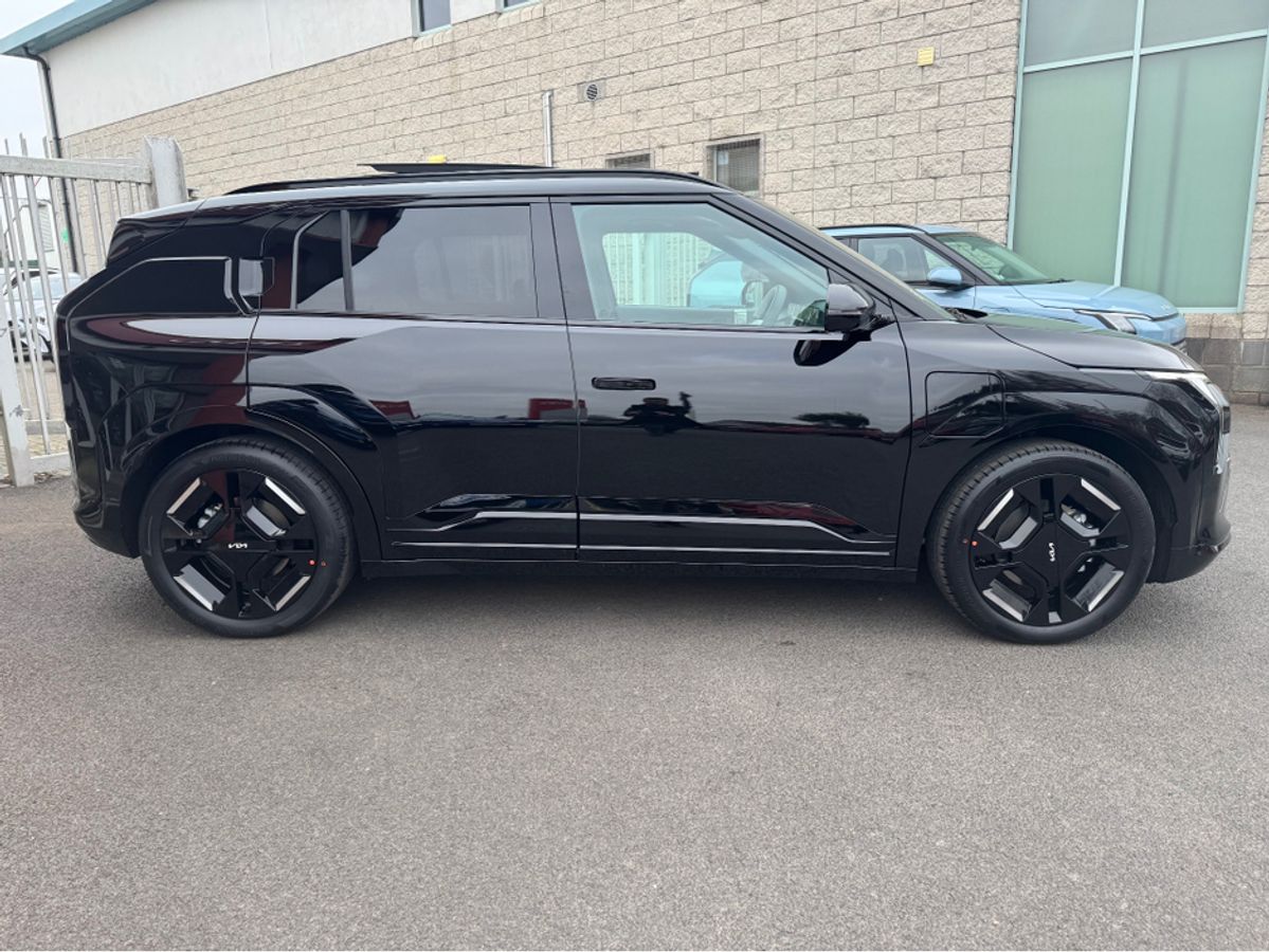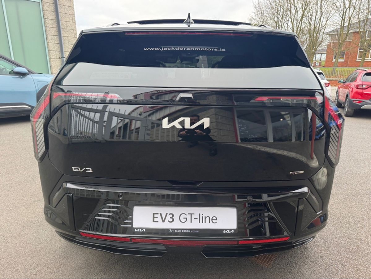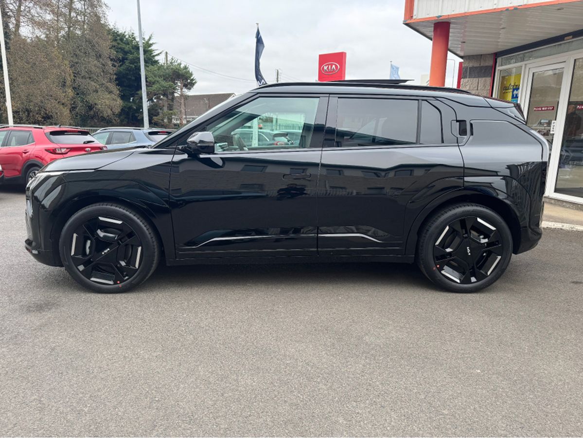 Brand new Kia EV3 GT Line in Aurora Black Pearl with Full Grey & White Leather Upholstery. This model comes with 19" Alloys, Sunroof, Power Tailgate, Head Up Display, Forward Collision Avoidance Assist 2, Highway Driving Assist 2, Vehicle-2-Load (V2L) Capability with