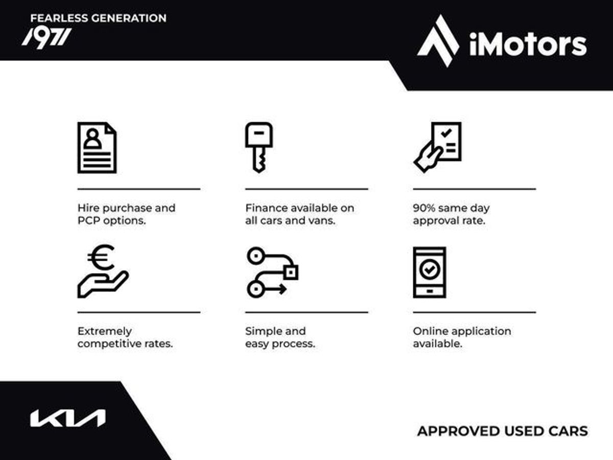 This is a Hire Purchase Agreement as defined by the Consumer Credit Act 1995. Lending terms and conditions apply. Applicants must be 18 years of age or over. A joint hirer may be required. Example: New / Used Vehicle: Typical APR 9.9% Fixed (subject to change). Cash Price €22,250. Deposit / Trade In €2,250. Finance Amount €20,000. 48 Monthly Instalments of €499.51. Hire Purchase Price €26,351.48. A minimum Deposit / Trade In of 10% may be required. Documentation Fee of €75 and Completion Fee of €50 applies. Finance is provided by First Citizen Finance DAC, which is regulated by the Central Bank of Ireland. Registered in Dublin 518751. (For any finance amount less than €20,000 or any term shorter than 48 months, the Typical APR may be higher).