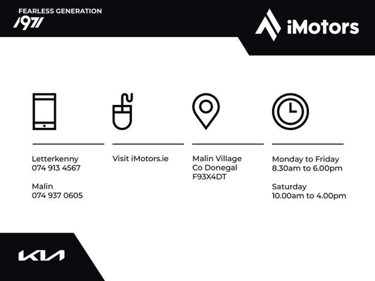 This is a Hire Purchase Agreement as defined by the Consumer Credit Act 1995. Lending terms and conditions apply. Applicants must be 18 years of age or over. A joint hirer may be required. Example: New / Used Vehicle: Typical APR 9.9% Fixed (subject to change). Cash Price €22,250. Deposit / Trade In €2,250. Finance Amount €20,000. 48 Monthly Instalments of €499.51. Hire Purchase Price €26,351.48. A minimum Deposit / Trade In of 10% may be required. Documentation Fee of €75 and Completion Fee of €50 applies. Finance is provided by First Citizen Finance DAC, which is regulated by the Central Bank of Ireland. Registered in Dublin 518751. (For any finance amount less than €20,000 or any term shorter than 48 months, the Typical APR may be higher).